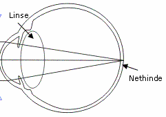 Når man er langsynet, bryder øjet ikke lyset nok i forhold til øjets længde. Når genstanden rykker tættere på, vil øjets linse begynde at blive mere rund (man akkomoderer), og i det langsynede øjet vil der være et tidspunkt, hvor linsen ikke kan afbøje lyset stråler nok til at samles på nethinden men bag nethinden.