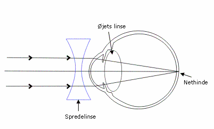 For at korrigere nærsynethed bruges en spredelinse, der spreder lyset stråler lidt inden de rammer linsen. Styrken af spredelinsen skal opveje den brydning, som øjets egne linse gør for meget.