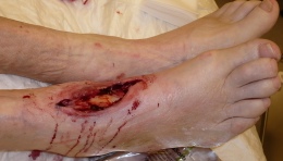 Som nævnt kan ben- og fodsår opstå, fordi en sko trykker. Det kan også opstå, fordi man støder foden ind i noget, eller det kan blot starte som en lille plet med et eksemagtigt udseende, der udvikler sig til et sår.