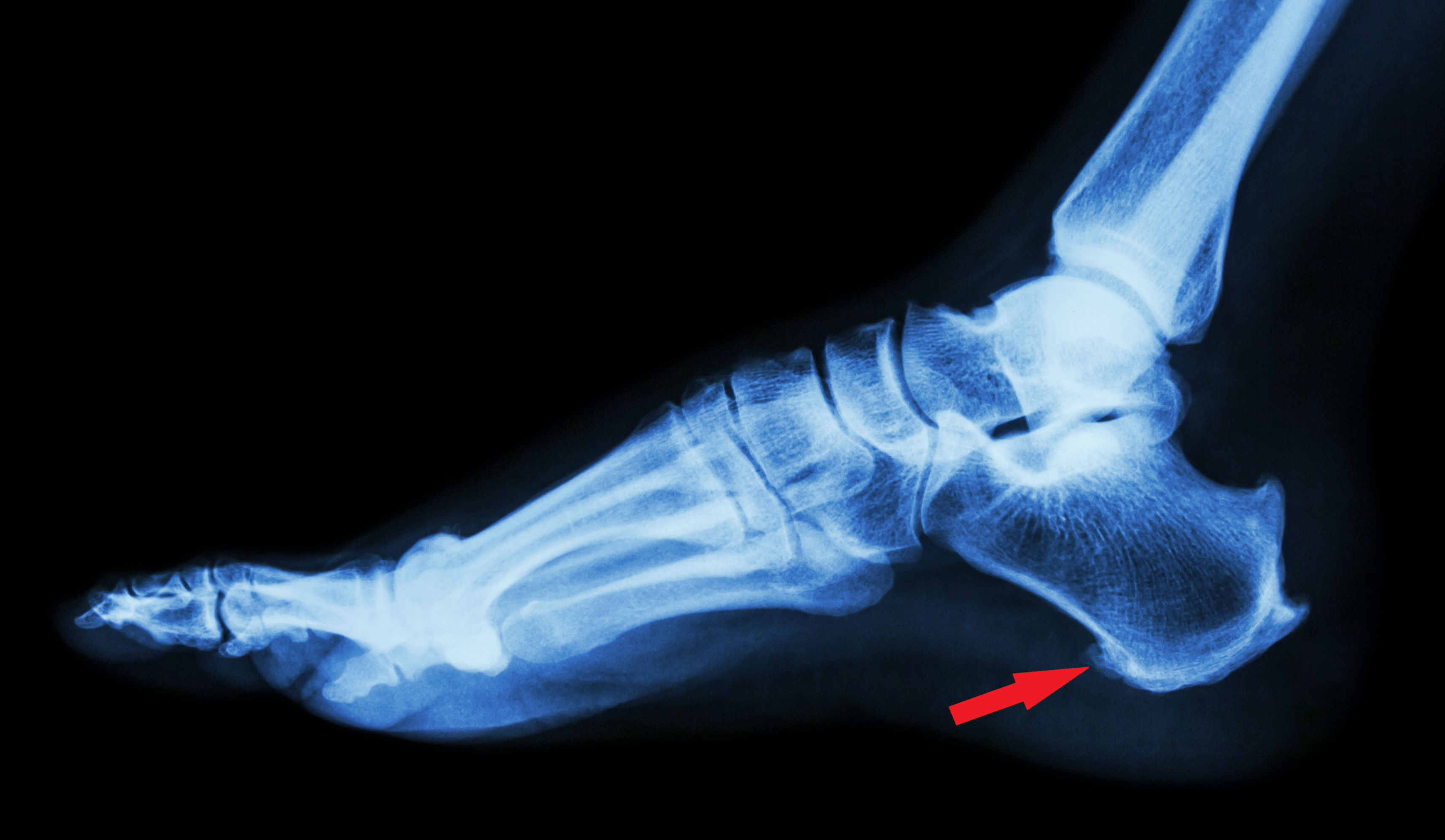 - I nogle tilfælde vil man kunne se en lille udtrækning af knoglen, der hvor svangsenen sidder fast.
