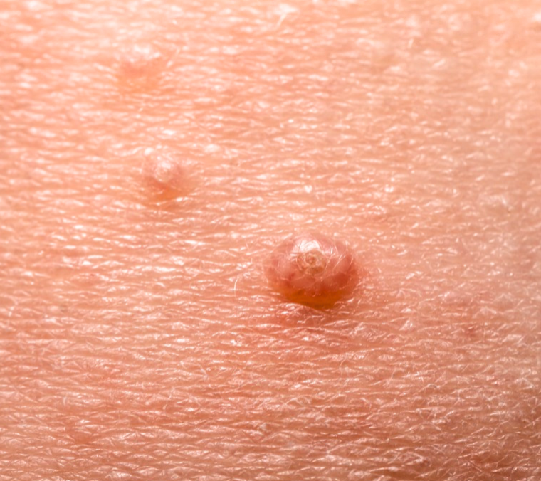 - Vandvorter sidder ofte på ansigt, arme og ben, og ses som små lyserøde, perlelignende knopper på huden.